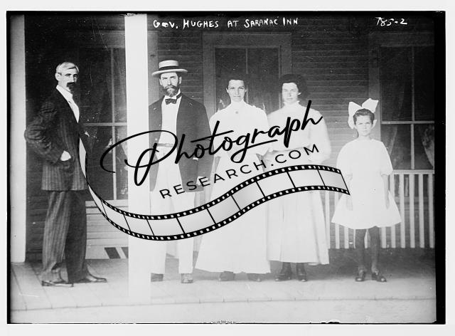 Governor Hughes,others on porch at Sarnac Inn,little girl
