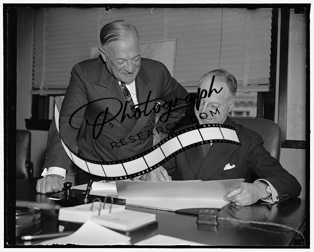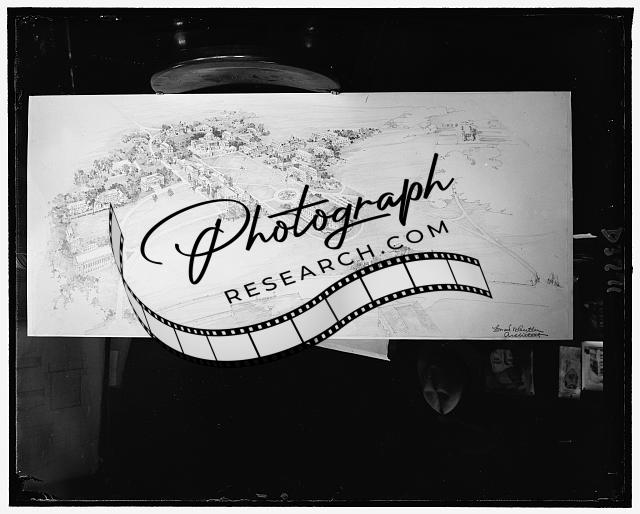 Title: Putting fly in ointment of 'McNutt-for -president' boom. Washington, D.C., April 21. If he continues the pace he is setting to date, Rep. Albert J. Engel, Republican of Michigan, appears certain to throw the 'monkey wrench' into the gears of the 'McNutt-for-President' boom which got underway during the past winter. Rep. Engel is pictured studying plans he dug up for the two palaces, 'Summer' and 'Regular' which as high commissioner of the Philippines, McNutt wants built as Commissioner's residences in islands. The proposed palaces are to cost $500,000 and $250,000 respectively. Rep. Engel takes great pride in pointing out that plans for the palaces include 18 lavatories and bathrooms with a seating capacity of 43, 4/21/38