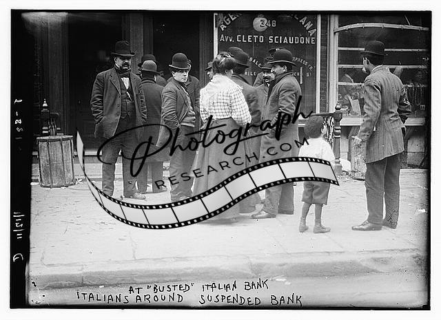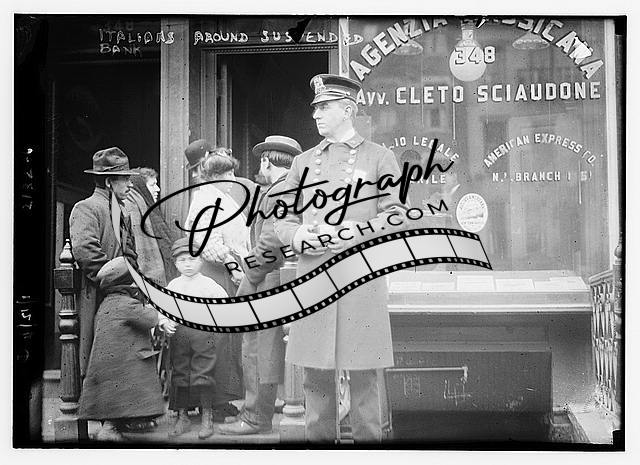 Italians around suspended bank,policeman,children,Bain NEws Service