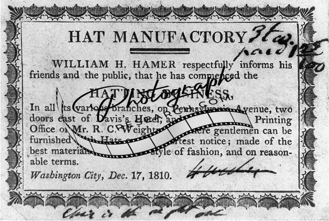 Hat Manufactory,William H Hamer,Washington City,1810