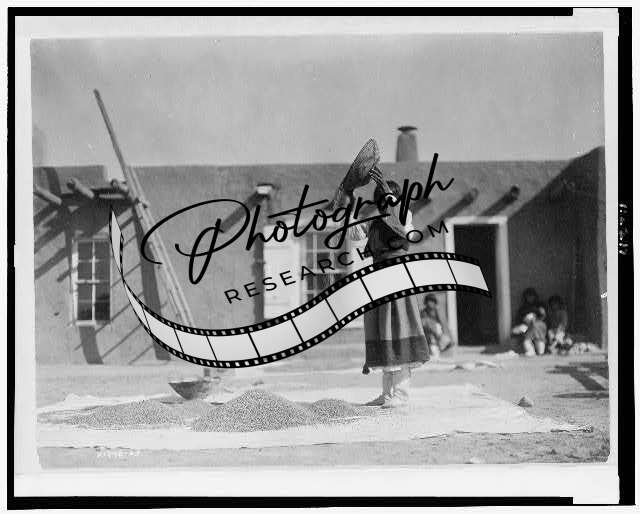 Winnowing wheat,Tewa Indian woman winnowing wheat,peublo building,NM,c1905