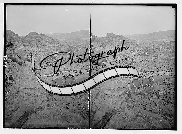 Title: Petra (Wadi Musa). Wadi ed-D r. Qattar ed-Der. Also called el Hammam, the 'baths'. Looking out into Wadi ed-D r.