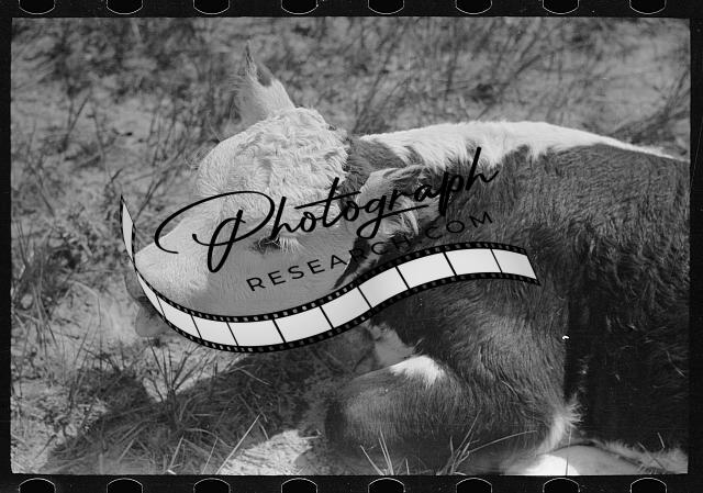 Title: Dude reviving a calf after branding, Quarter Circle U Ranch roundup, Montana