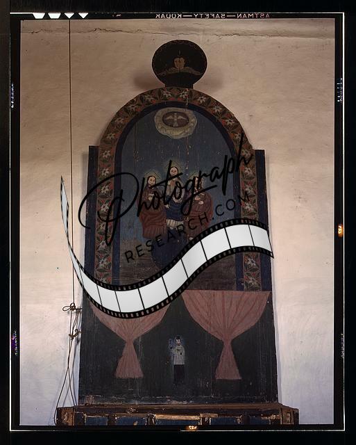 Altar,church dedicated,Trinity,Catholic paintings,Trampas,New Mexico,NM,1943