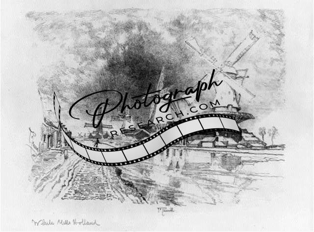 White Mills,Holland,Netherlands,Windmills,Canals,1897,Joseph Pennell