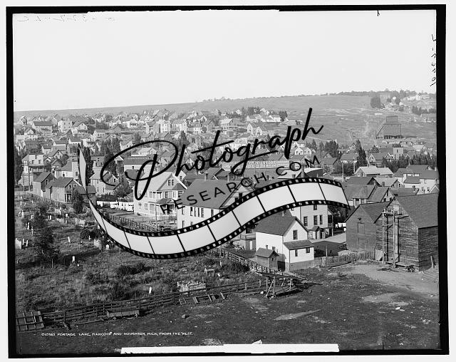 Portage Lake,Hancock,buildings,fences,hills,cities,Houghton,Michigan,MI,1900