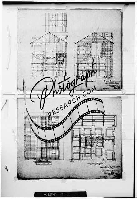 Title: 197. Photocopied July 1978. (QMC) 'QUINCY SMELTING WORKS, HANCOCK, MICH. CRUSHING PLANT, GENERAL ARRANGEMENT, DEC. 16, 1919.' SECTIONS AND ELEVATIONS. - Quincy Mining Company, Hancock, Houghton County, MI