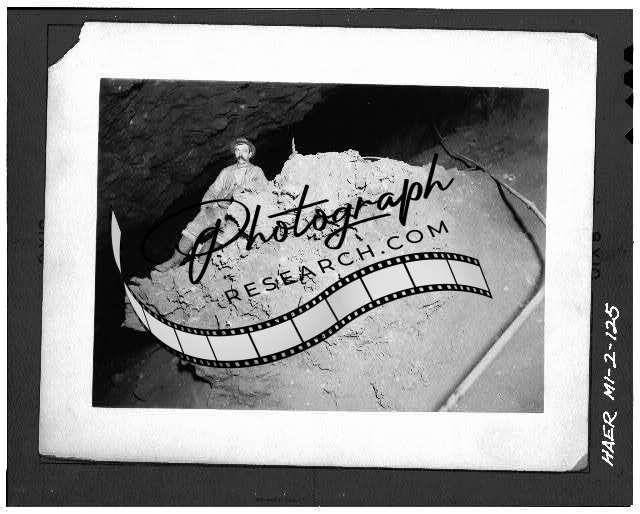 Title: 129. Photocopied July 1978. UNDERGROUND CHUTE MADE BY BUILDING DRY WALLS THROUGH AN OLD STOPE. 1927. - Quincy Mining Company, Hancock, Houghton County, MI