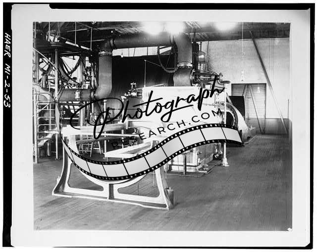 Title: 56. Photocopied July 1978. (LGK) INTERIOR VIEW OF LAST NO. 2 ENGINE HOUSE, SHOWING NORDBERG HOIST, FIRST OPERATED IN 1920. C. 1925. - Quincy Mining Company, Hancock, Houghton County, MI