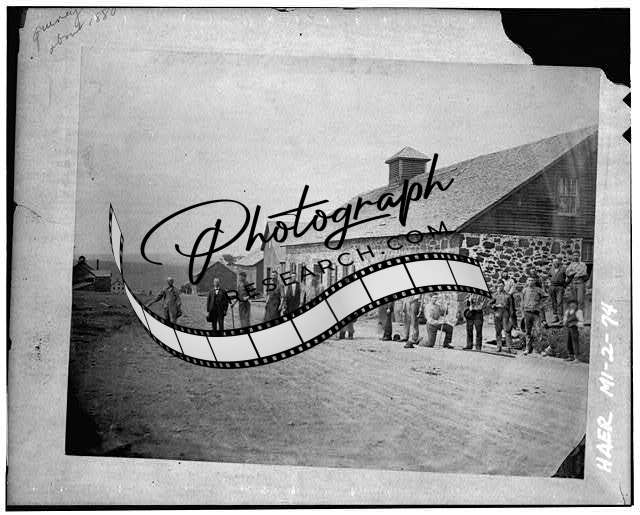 Title: 77. Photocopied July 1978. (QMC) VIEW LOOKING NORTH ALONG ROAD FROM FRONT OF MINE OFFICE. C.1900. - Quincy Mining Company, Hancock, Houghton County, MI