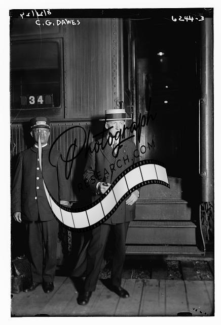 C.G. Dawes,train cars,steps,transportation,jackets,hats,1924
