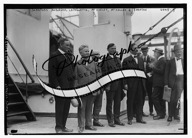 Senator Robinson,LaFollette,McKinley,McKellar,Swanson,ship passengers,decks,boat