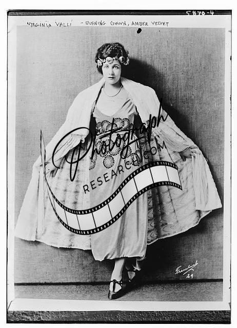 Virginia Valli wearing evening gown,Amber Velvet,cloak,actress,Bain News Service