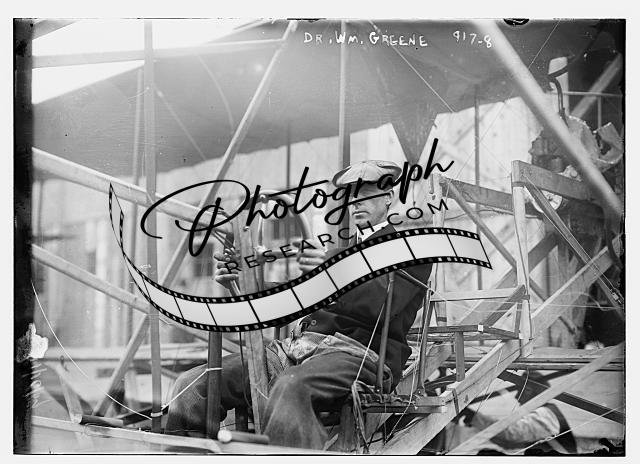 Dr. William Greene at pilot wheel of aeroplane,airplane,1909