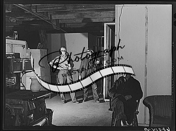 Title: Men sitting around stove in basement of Mr. Tilly's store. He lets them sit here all night. Radford, Virginia