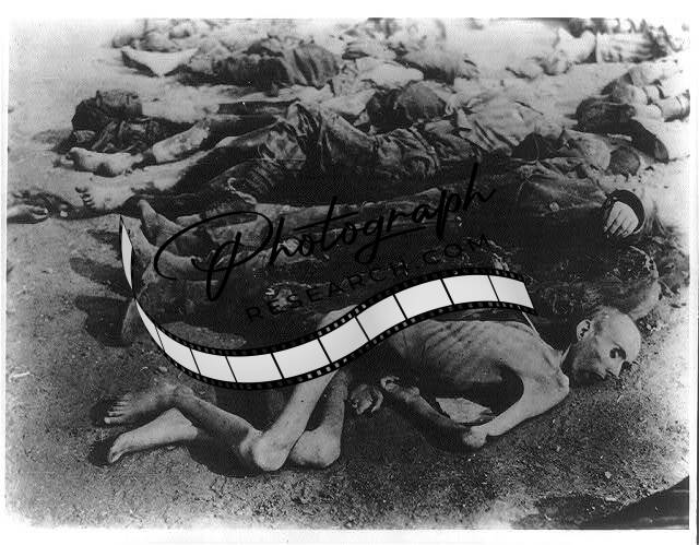 Row of emaciated corpses, Sachsenhausen, Germany, 1945?