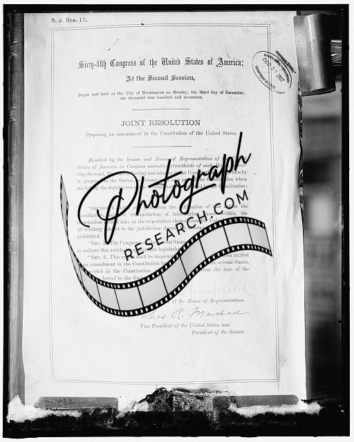 18th Amendment of the Constitution,United States of America,USA,Harris & Ewing