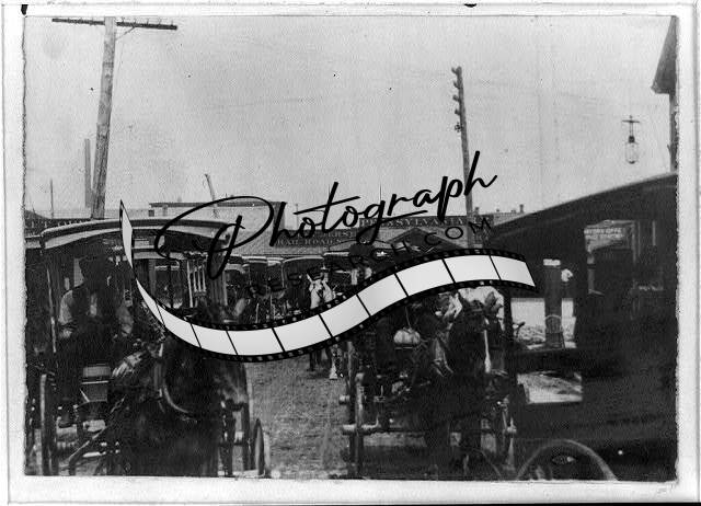 Atlantic City,N. J.,1896. Busses horse-drawn carriages railroad depot