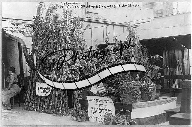 Exhibition of Jewish Farmers of America,corn stalks,potted plants,Yiddish signs