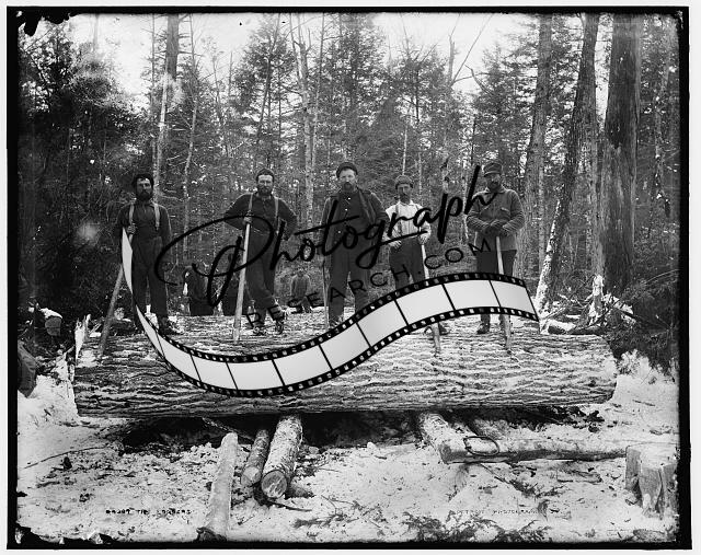 Loggers,workers,logs,woodcutting,winter,snow,lumber industry,Michigan,MI,1880