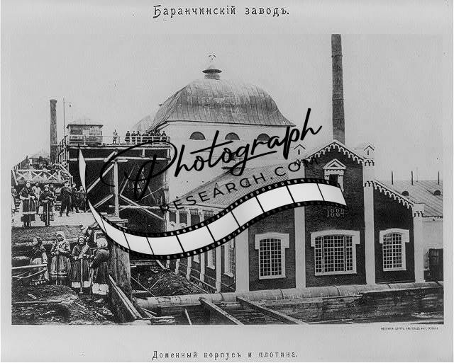 Men and women outside Russian factory,1884
