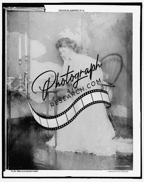 Girl playing solitaire,women,Frank Weston Benson,Detroit Publishing Co,c1909