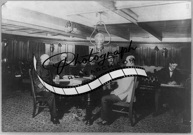 Naval court of inquiry on destruction of the MAINE,men seated around table,1898