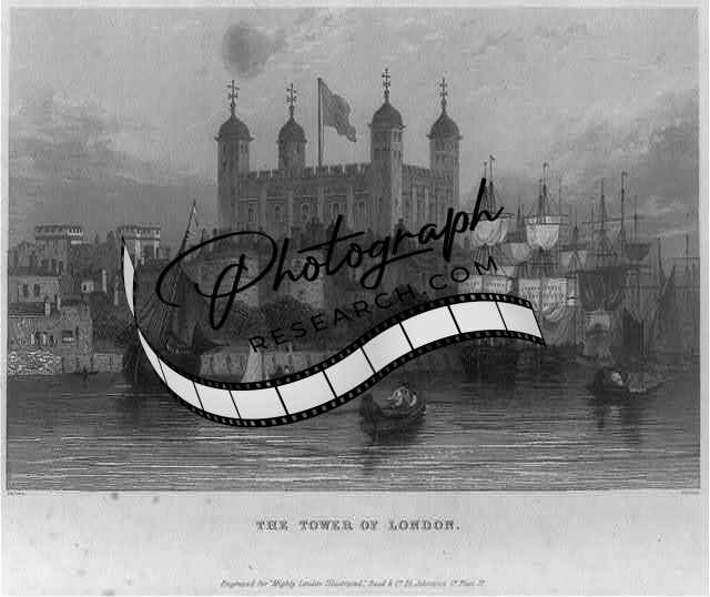 The Tower of London viewed from across Thames River,1851-1855,ships,flag
