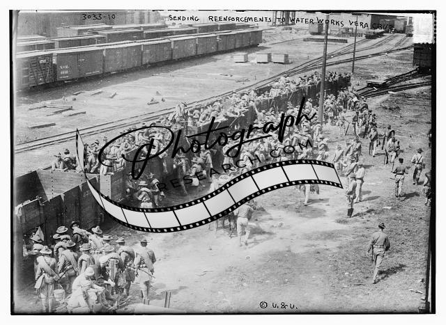Sending reinforcements to water works Vera Cruz,Mexico,1914,Mexican Revolution