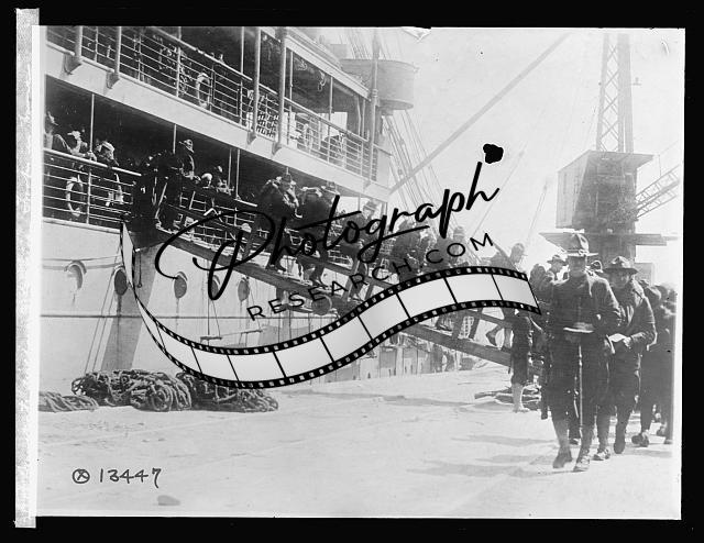 Transports discharging American troops in France,World War I,WWI,Military,c1916