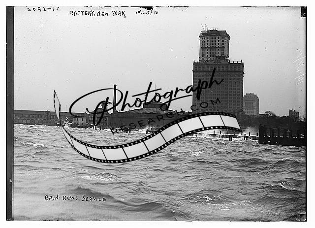 The Battery,New York,NY,October 27,1910,waves crashing,building,Bain News