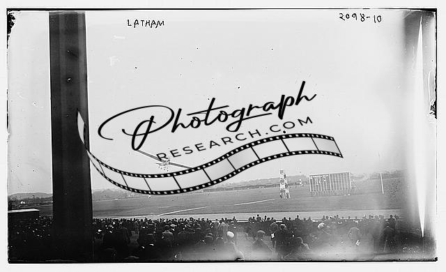 Hubert Latham flying in airplane,Aviation,Air Pilot,spectators,field