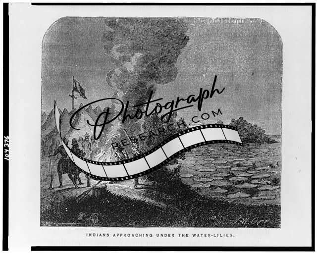 Indians approaching under water-lilies,Spaniards,shoot,rifle,War,Florida,FL,1858