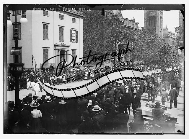 Labor Day Parade,equestrians leading parade,New York,NY,horseback,1908,crowd