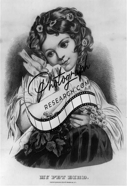 My Pet Bird,Currier & Ives,1850-1900,Animal,Girl,Children