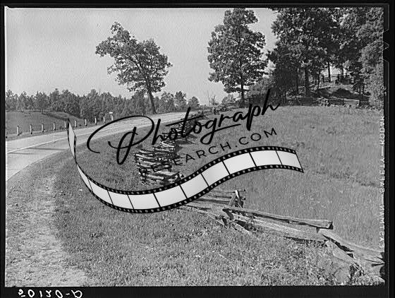 A new main highway with old rail fence at edge of field beside it. West Virginia
