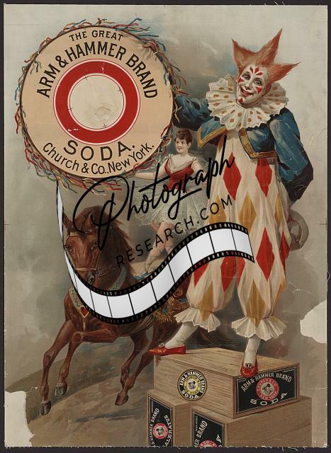 Arm & Hammer brand soda,Advertisement,c1900,clown