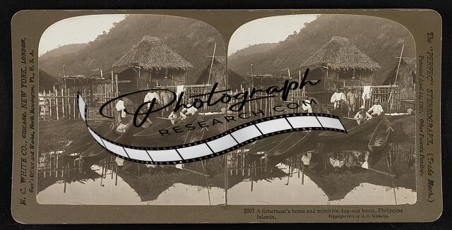 A fisherman's home and primitive dug-out boats, Philippine Islands
