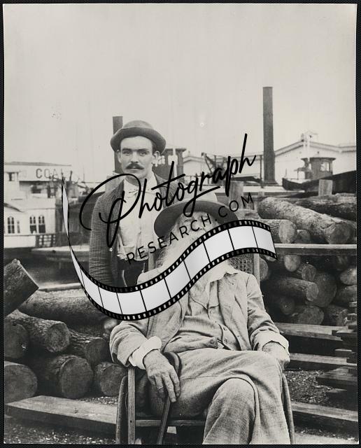 Walt Whitman,his nurse Warren Fritzenger,near Mickle Street House,Camden,1890