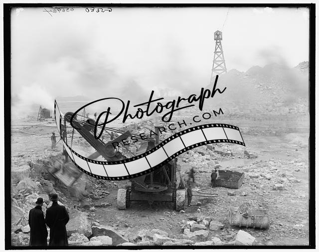 Steam shovel removing rock loosened,dynamite,Livingstone Channel,Michigan,1905
