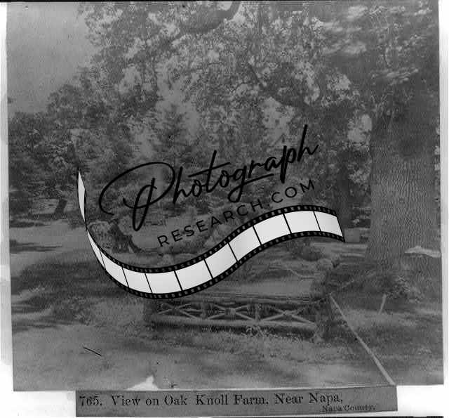 View on Oak Knoll Farm,near Napa,Napa County,California,CA,1866,wood bench