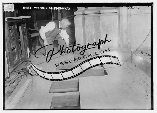 Bomb outrage -- St. Patrick's,man working on floor,hammer,Bain News Service