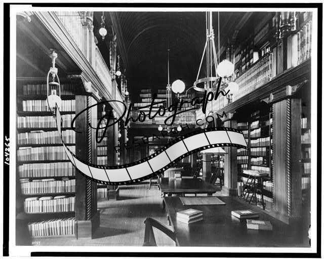 Reading room,public library,bookstacks,shelves,Brookline,Massachusetts,MA,c1905
