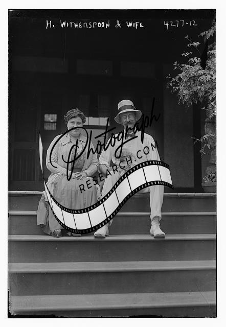 Herbert Witherspoon & wife,seated on porch,pet dog,Bain News Service