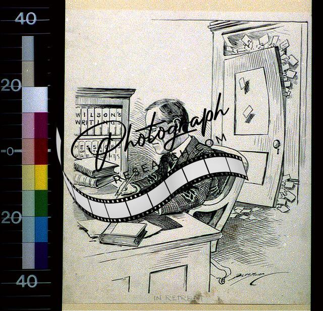In retreat,1912,President Woodrow Wilson,Speechwriting,Cartoon,Desk,Pen