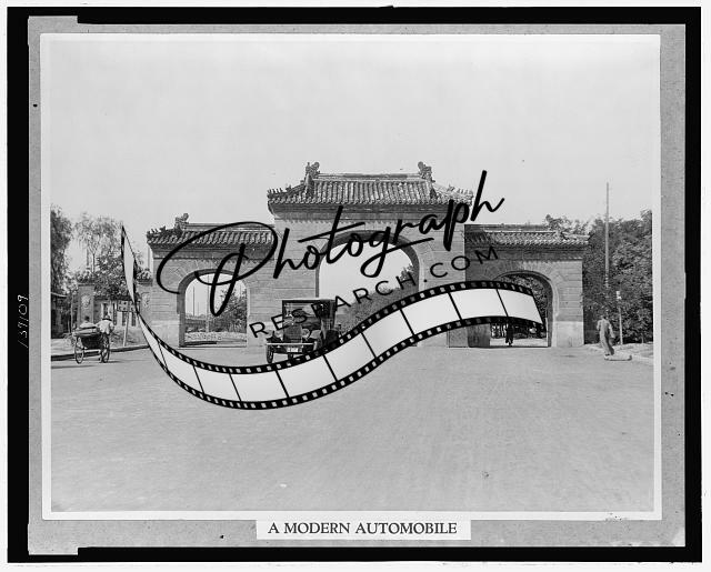 Modern automobile,Ford Motor Company Auto passing thru Beijing city wall,c1931
