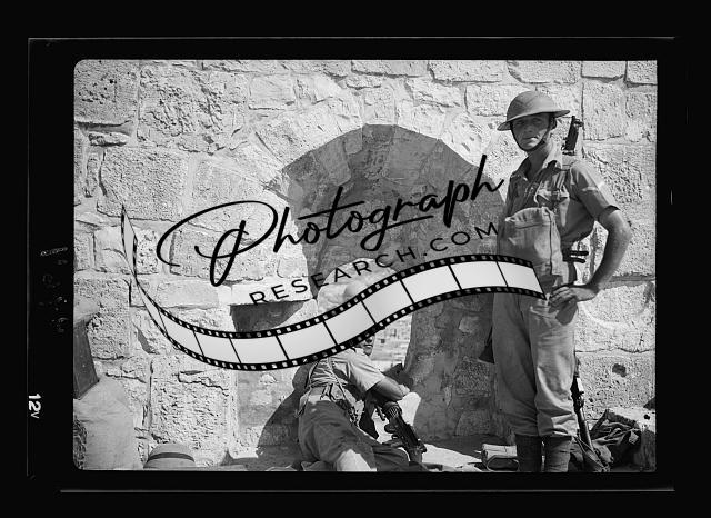 War-like scene on roof of Tower of David,mounted machine guns,Jerusalem,Israel,1