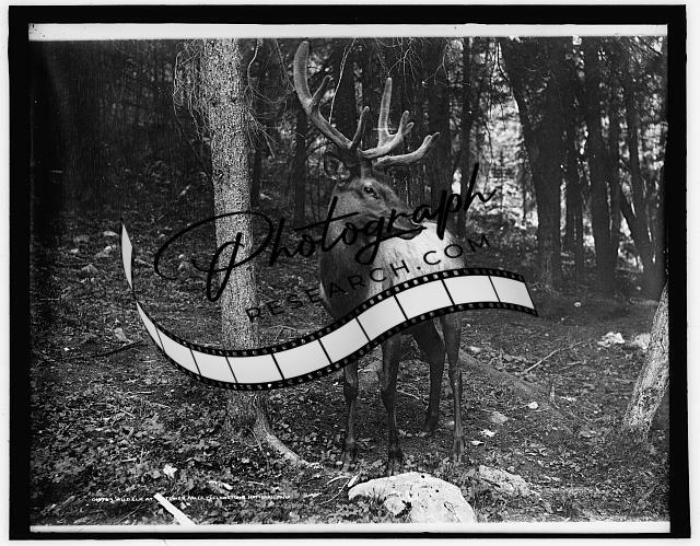 Wild elk,Tower Falls,animals,antlers,Yellowstone National Park,Wyoming,WY,c1907