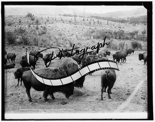Roosevelt,king,herd,bay,Carrie Nation,dehorned,bison,Yellowstone Park,WY,c1907