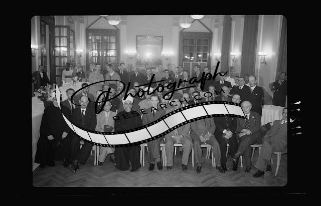 Title: Reception at King David Hotel, Oct. 16, '40 for Egyptians Ibrahim el-Mazuri & . Table group listening to speech being made by Egyptian guests